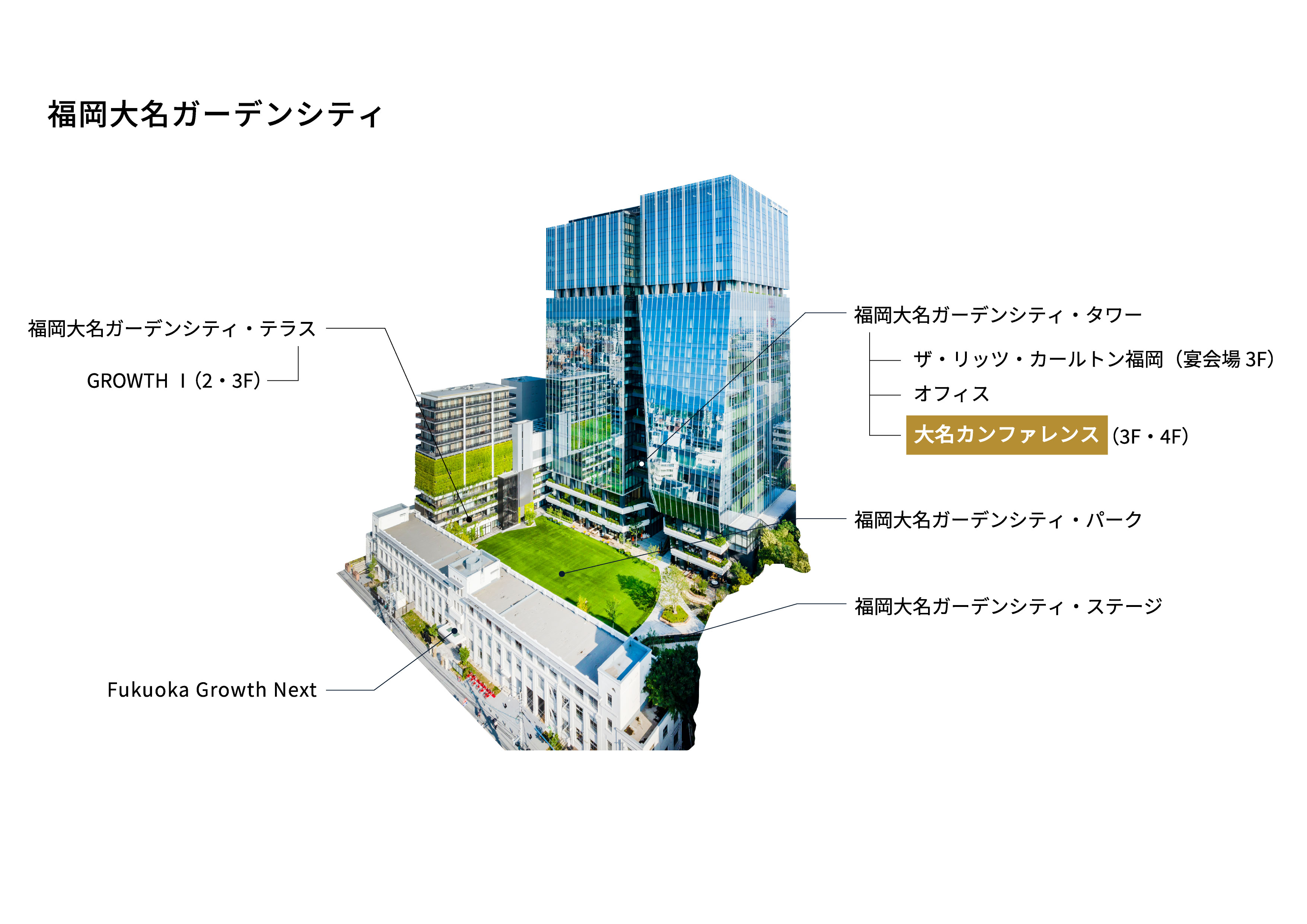 大名カンファレンスは、福岡大名ガーデンシティ・タワーの3・4階に位置する、上質な会議室・イベントスペースです。